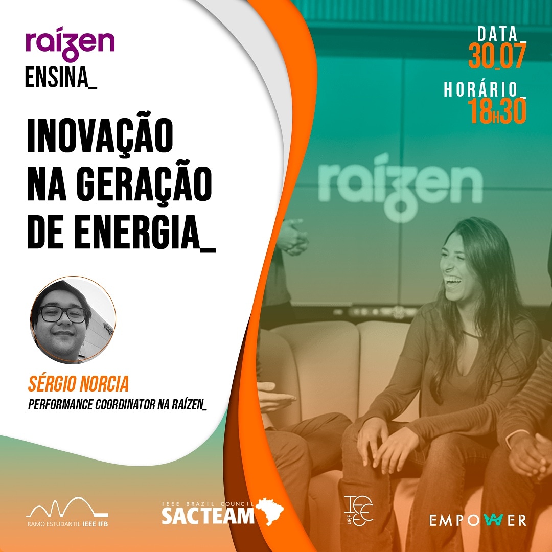 Com o objetivo de trazer para as Organizações Estudantis temas de expertise das Empresas Mentoras da Plataforma Empower, nesse episódio (dia 30, quinta-feira, às 18h) você poderá aprender sobre Inovação na Geração de Enegia com Sérgio Norcia – Performance Coordinator na Raízen! Essa realização será feita em conjunto com os nossos parceiros IEEE IFB, IEEE UFJF e IEEE SAC Team Brasil.