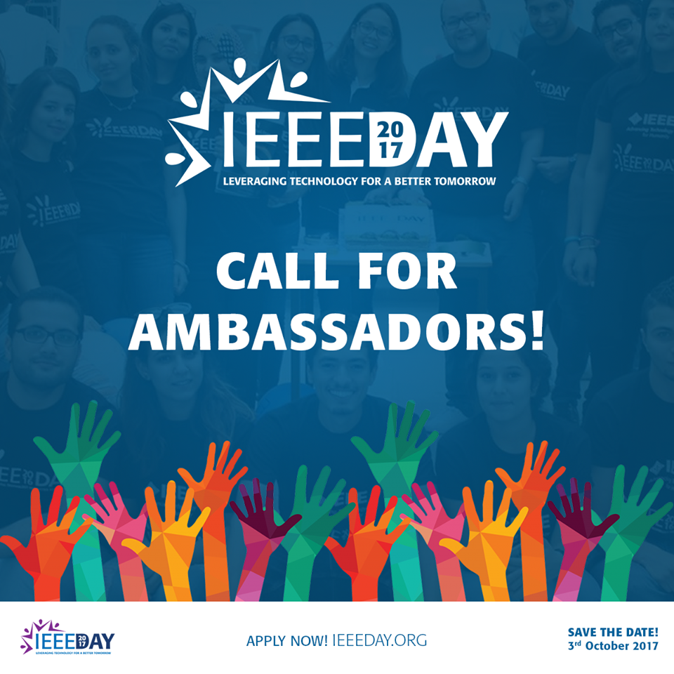 Se você está interessado neste cargo, preencha o Formulário Embaixadores (clique no link na biografia) até sexta-feira 30 de junho de 2017 (www.ieeeday.org/ambassadors)