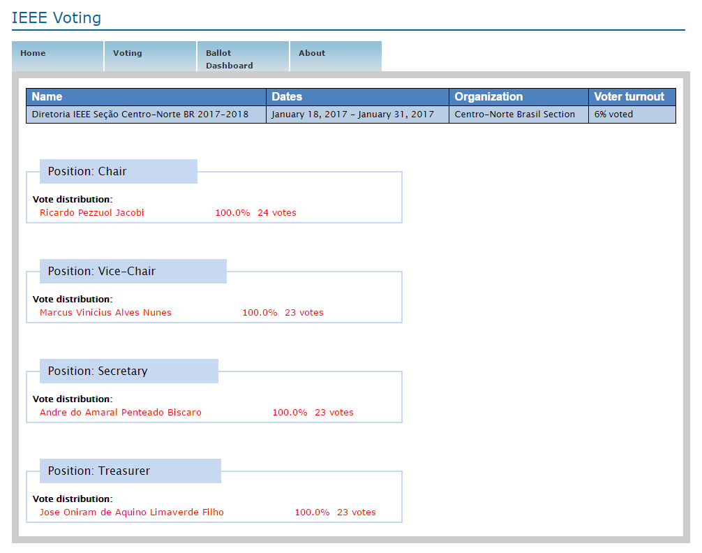 A IEEE Seção Centro-Norte Brasil gostaria de informar os resultados da Eleição para o Comitê Executivo (Biênio 2017-2018).