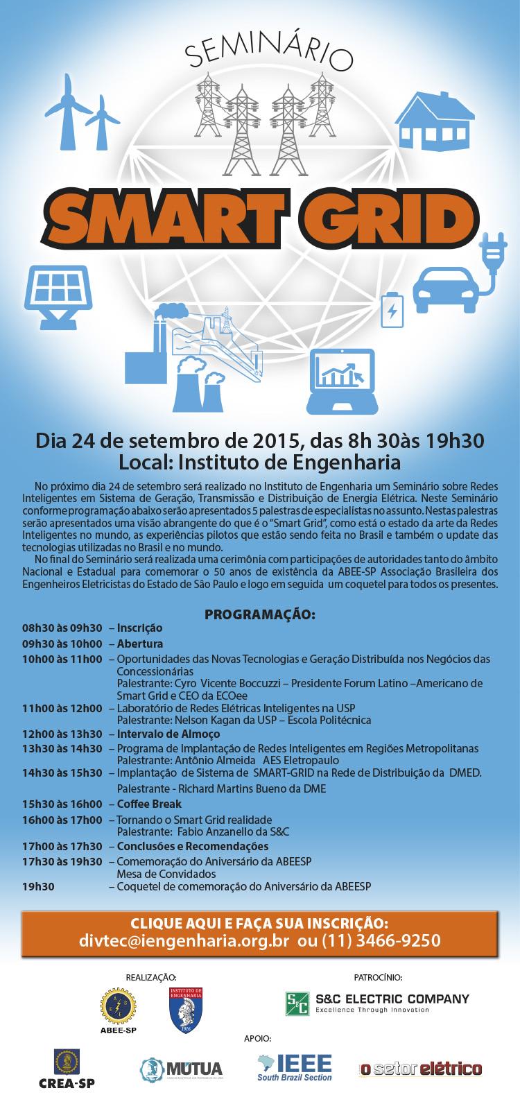 Seminário: Dia 24/09/2015, das 8:30 às 19:30 no Instituto de Engenharia – SP